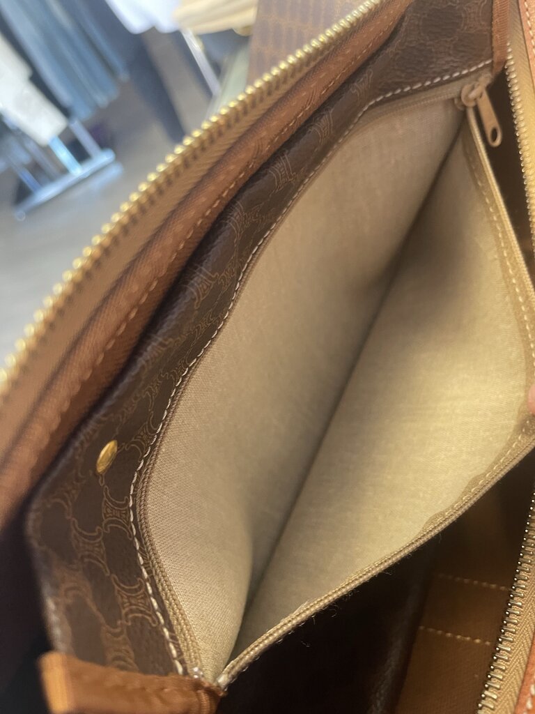 Vintage Celine Macadam 45 Travel Bag — Brown Coated Canvas & Tan Leather