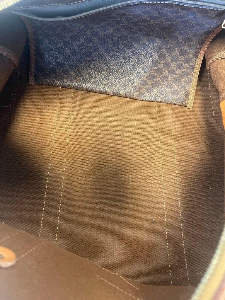 Vintage Celine Macadam 16-Inch Travel Bag — Brown Coated Canvas & Tan Leather