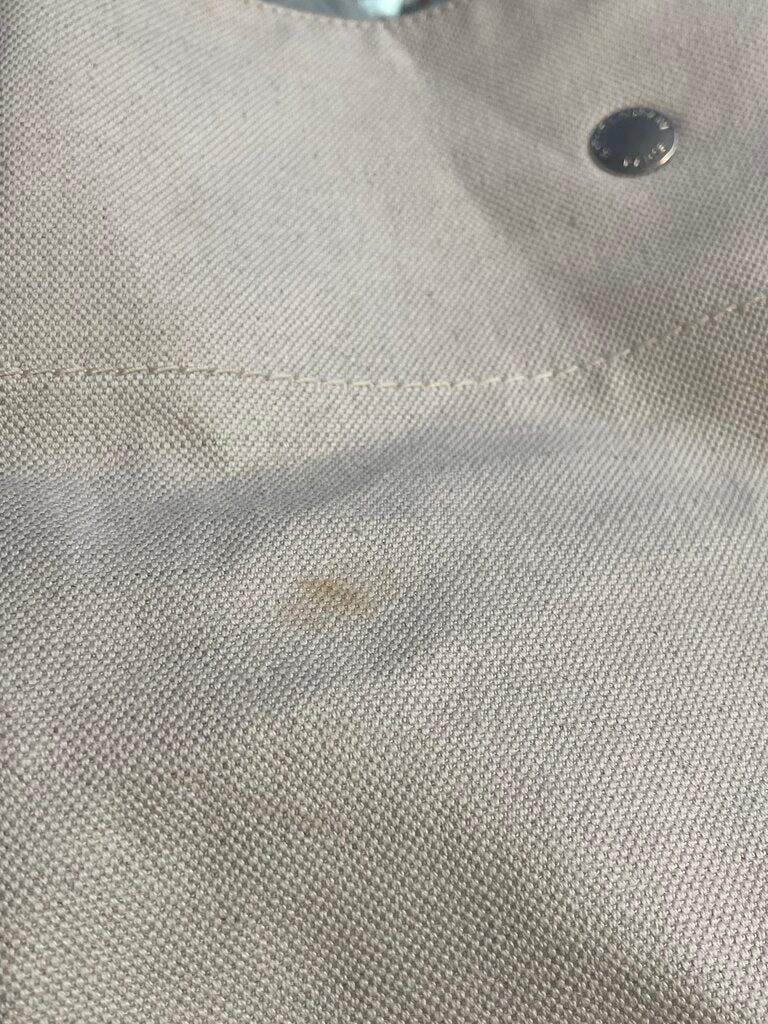 This bag remains in very good pre-owned condition. There is a small mark on the back (pictured), but overall the canvas is clean, the structure is intact, and the handles and hardware show minimal signs of wear.